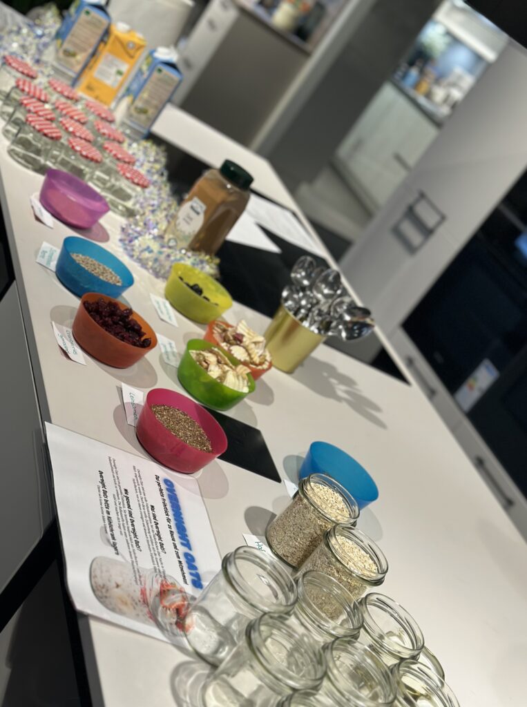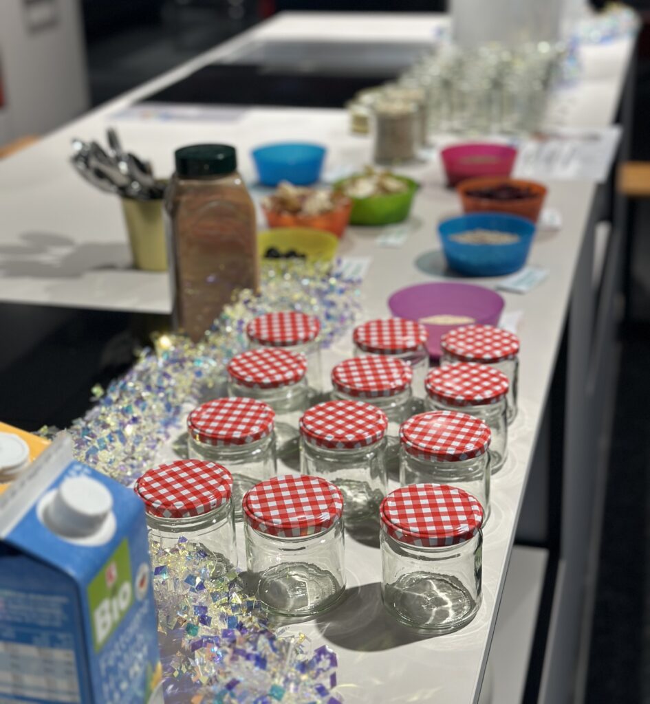 Wir schreiben Frühstück neu – innovativ, gesund und schmackhaft im Glas! Bei dieser Aktion kreieren Kinder ihre eigene Lieblingsmischung aus verschiedenen Samen, Flocken, Kernen, Joghurt oder milchfreien Alternativen und frisch geschnittenem Obst. 🌞✨
