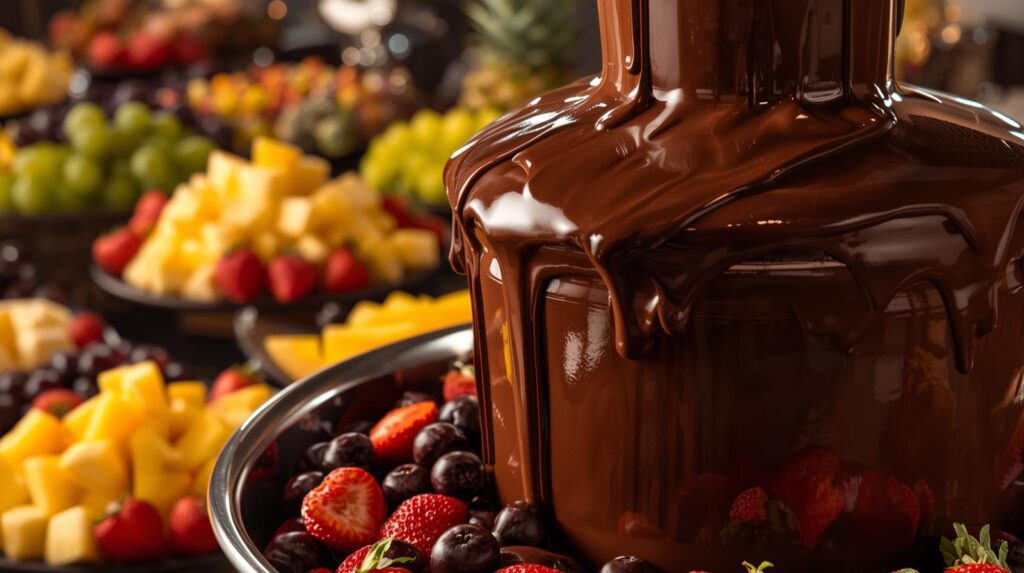 Früchte im Schokobrunnen – ein genussvolles Erlebnis für alle Sinne. 🍫🌟